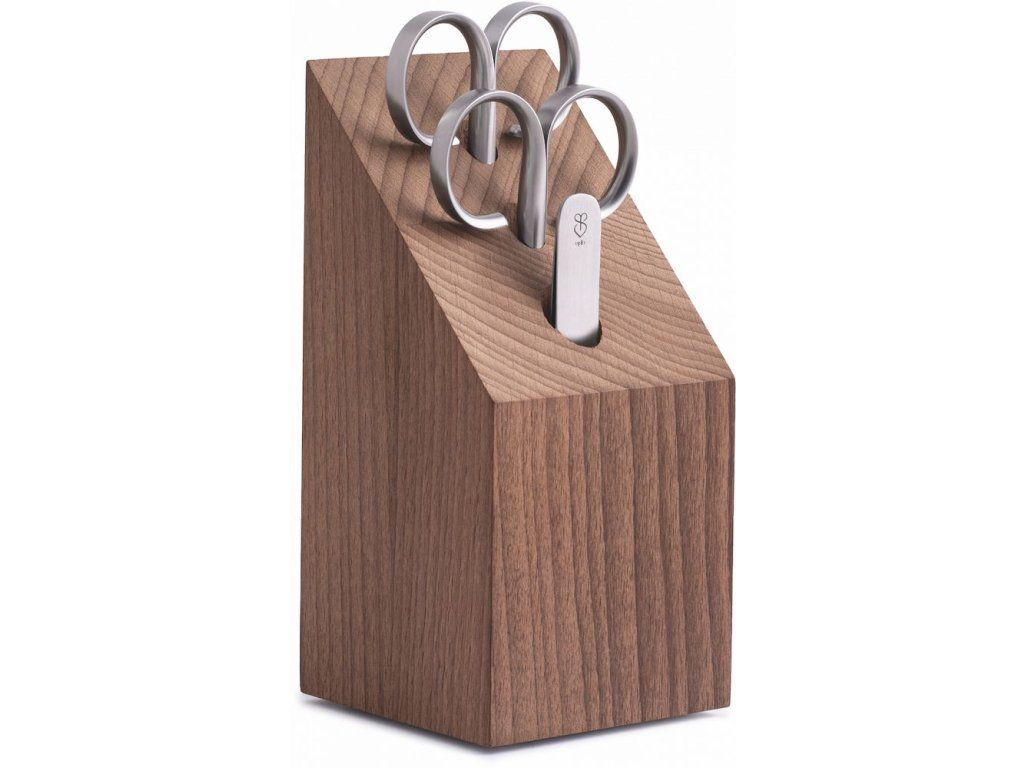 Byl navržen tak, aby harmonicky ladil s tvarem nůžek. Je vyroben z impregnovaného dřeva a vyznačuje se funkčností, estetikou a jednoduchým designem, takže snadno zapadne do prostoru každé koupelny. Sada se skládá z nůžek na nehty, profesionálních manikúrních nůžek a šikmé depilační pinzety.