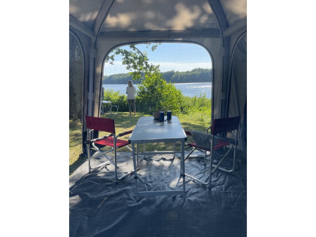 Skládací kempingový stůl s hliníkovou konstrukcí. Včetně tašky.